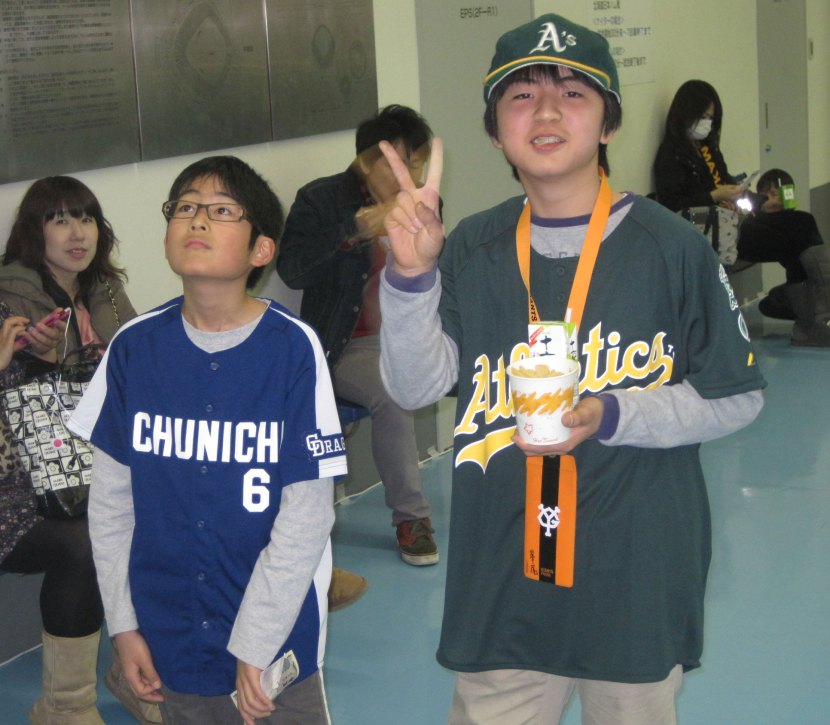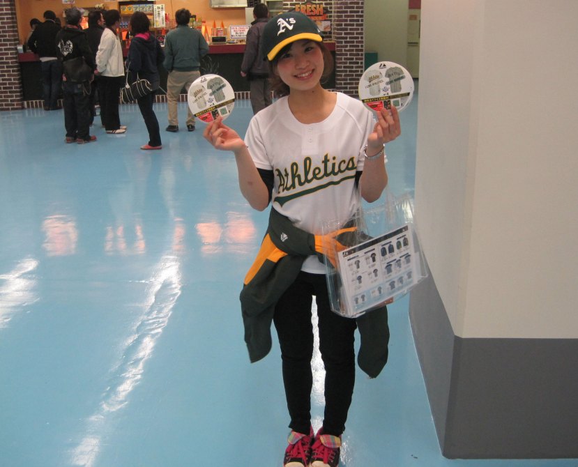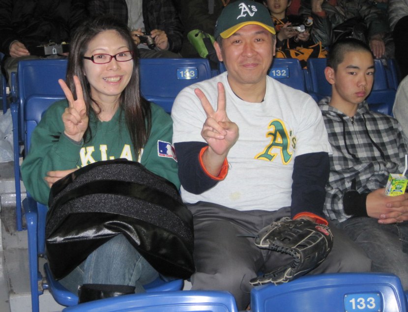 Found a few Japanese A’s fans in the house, both young and old. This guy told me he’s been rooting for Oakland for 10 years and that he recently adopted Yoenis Cespedes as his new favorite player. Looks like he’s successfully indoctrinated his daughter into baseball fandom but sonny is still dubious.