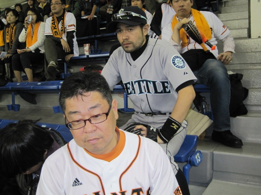 The Ichiro impersonator sitting near the band in right-center took the Giants loss pretty hard — especially considering it was just an exhibition and Ichiro doesn’t currently play for either team involved. This guy has serious commitment to his craft with the sweatband, shades and even that faraway “128 million people need me to reach 200 hits again this year” look in his eyes.