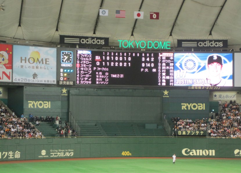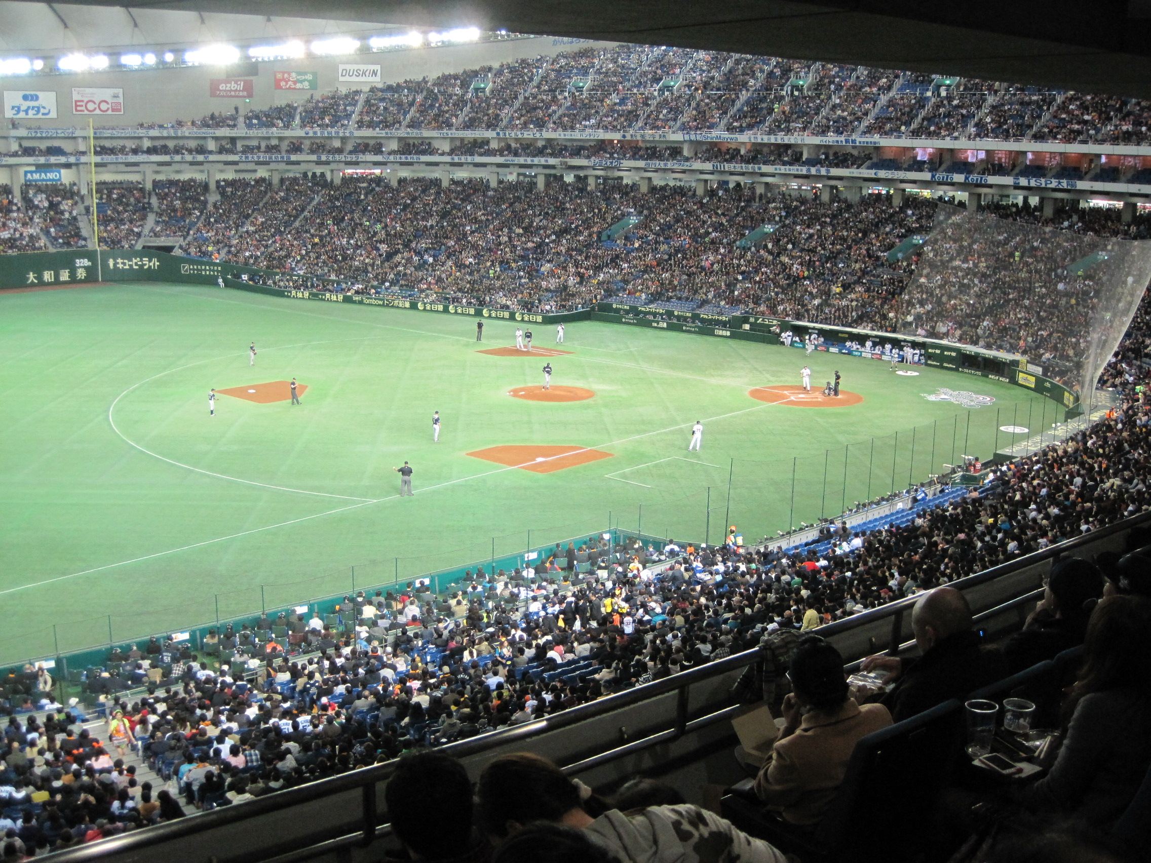 Like many older Major League parks, the Tokyo Dome’s seats are steep. I’m pretty sure you can actually fall off the edge of the earth from the third deck. The upside is that no matter where you sit, the infield seems relatively close. The dome roof may also add to that effect, as the place feels almost like an oversized gymnasium from behind home plate.