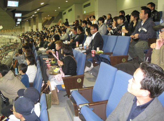 A suite level located between the lower bowl and the upper deck is the lone exception. Recently renovated with seats that pass for stadium business class, a premium hot buffet (cost: 2,000 yen) serves a bougy-er crowd.