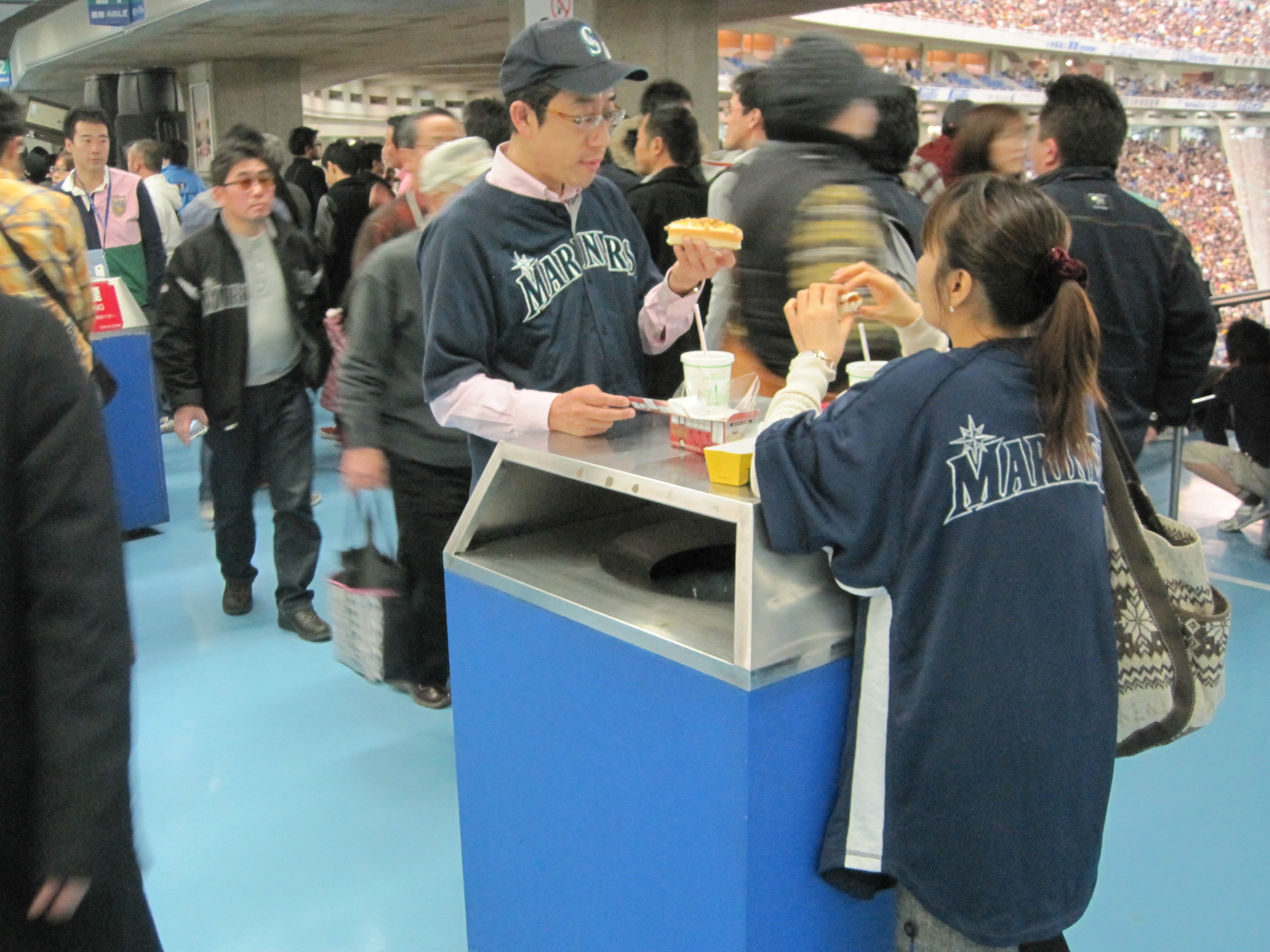 There are a few of these stands around the main concourse, but I cannot for the life of me figure out what the pictured food items actually are. I asked several of the concessionary engineers, but no luck. Is it a turkey sandwich? Cream cheese popper? Must be a high-class item with that ¥750 price tag (about $10). A hot dog costs half that. Noodle bowls and fries are only ¥400 ($5), although some of the curry rice and fried chicken bowls run as high as ¥860 ($11). In a country where nothing is inexpensive, eating at the ballpark is probably 50 percent cheaper than at Citi Field. Then again, we’re half a world away from Shake Shack in more ways than one.