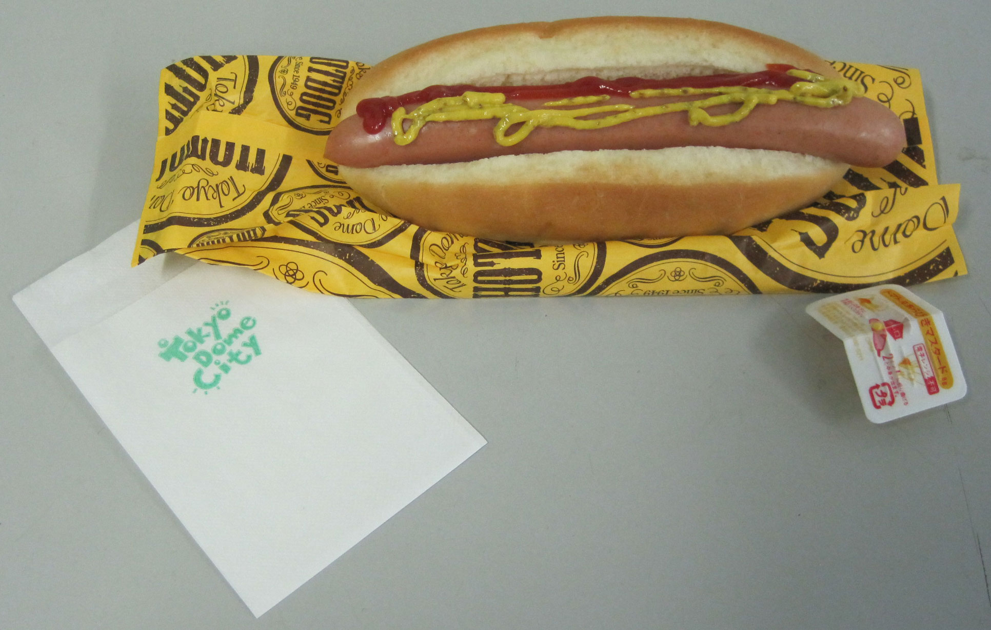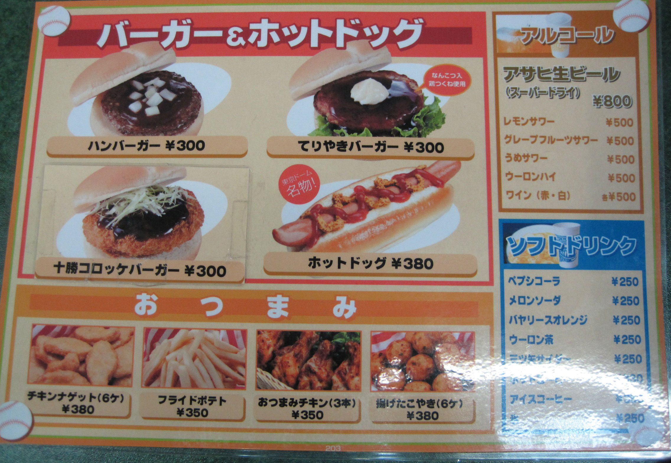 Even 5,000 miles from Chavez Ravine, you can still enjoy a hot dog at the ballpark. Regular dogs come on a bun with a combo ketchup-mustard pacakge, and there’s also a jumbo option skewered on a wooden stick. The standard dog tasted like your average dirty water wiener, although somehow made with lower quality meat. Definitely a hint of Spam in there. They also don’t serve sauerkraut, which means I could never live here. I’m not proud of occasionally eating kraut and mustard on a bun with no hot dog, but that doesn’t mean I don’t enjoy it. French fries and popcorn are also popular, and there’s a combination hot pretzel/churro stand (chetzel stand) on the upper concourse.