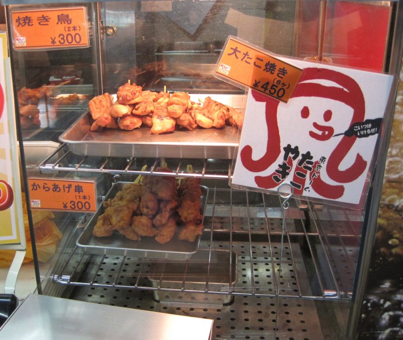 As the old saying goes, sometimes a picture is worth six Japanese characters. I wasn’t going anywhere near these popcorn somethings, but the sign indicates they’re either deep-fried squid or deep-fried octopus. The squidopus even seems to be saying so himself. In general, seafood is not something I’m willing to get real adventurous with. I’ve just been burned too many times before — the Great Shrimp Crepe Incident of 2011 comes to mind. But “When in Tokyo…” so I went out on a limb Monday, ordering the chef’s choice of nigiri at a moderately upscale sushi joint near our hotel. Some of it was slimy. Some of it was scaly. The chef may have found Nemo in the day-old bucket and sliced him up for me. But I decided I was going to eat everything on the plate, and I did. That said, I would never touch squid-on-a-stick at the Tokyo Dome.