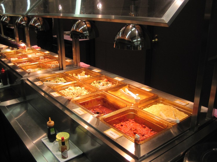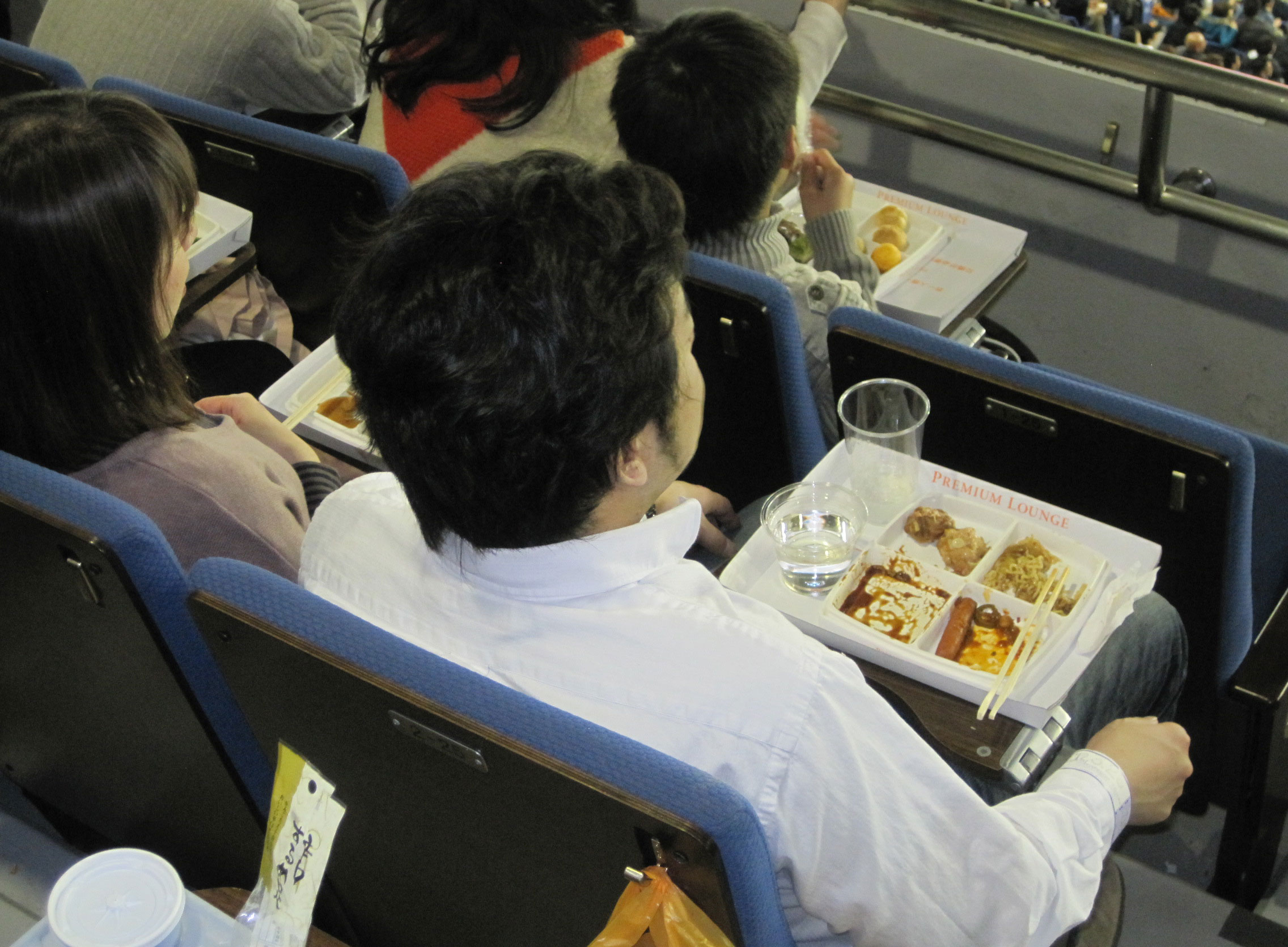 When I discovered the premium buffet on the second level of the Egg, I was PUMPED. After eating two meals here nearly every day this week, I would have rather swallowed a samurai sword than taken down another gray noodle bowl. Priced at ¥2,500 ($33) and accessible only with a ticket in the luxury boxes or club seats, I was convinced this was finally stadium cuisine on par with that of newer American parks. Once again, disappointment. I don’t want to sound like Tom Colicchio during the first week of a Top Chef season. I love ballpark food, especially the stuff that’s unique to each Major League city. Every time I ordered this week, I was hoping for something that would warrant a “You won’t believe what they serve at baseball games in Tokyo!” But this buffet had Olive Garden-level spaghetti and meatballs along with dumplings and spring rolls straight out of a Panda Express styrofoam box.