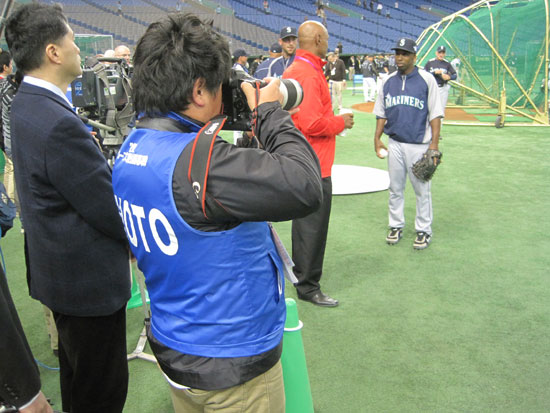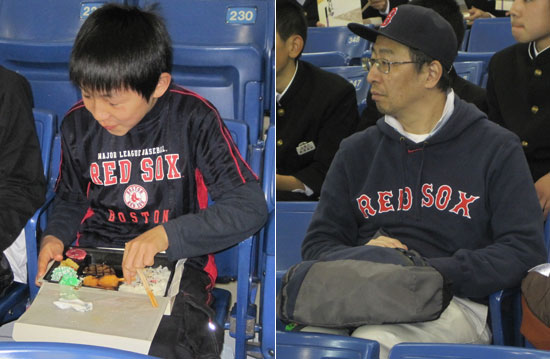 Despite Tokyo’s near-complete lack of street crime and a fanbase that couldn’t be politer, it’s hard to turn around in the Dome without bumping into a security officer. Event staff in dark blue uniforms are posted atop nearly every section and at regular intervals on the concourse. More patrol the aisles and walkways while at least a half-dozen mingle around every major entrance. And this is in addition to the ushers in light blue jackets who check tickets and direct fans to their seats. The funny thing is that the stadium has way fewer restrictions than most MLB parks. I walked from the media section to the first row behind home plate and watched an inning unimpeded. Stood in the aisle and shot five minutes of video, no problem. Entered and left the stands in the middle of many at-bats with just a polite head bow from the blue-shirts.